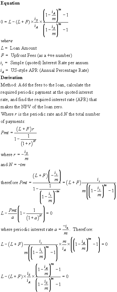 | APRToQuoted (LoanAmount, Fees, USAPR, TermYrs, PmtsPerYear) | ||||||||