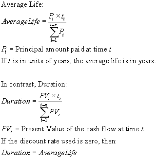 The cash flows in the function represent the principal flows - Average Life is all about calculating the weighted average time of the principal repayment times. | ||||||||