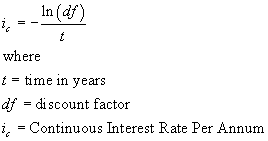 | Takes a discount factor and converts it to a continuous interest rate. | ||||||||
