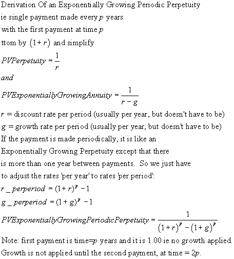 | Present value of perpetual periodic stream of payments, where the payment is made periodically, not necessarily at 1 year intervals. | ||||||||
