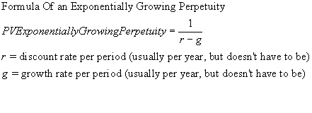 | Present Value of an Exponentially Growing Perpetuity | ||||||||