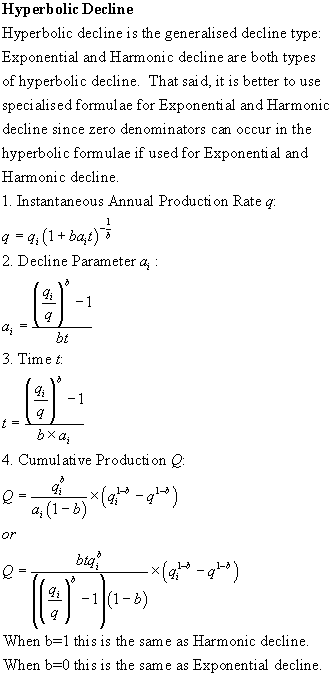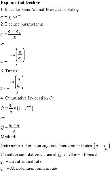 This decline function calculates the decline factor internally based on the plateau rate, the abandonment rate, and the reserves. To see what decline factor it calculated, use the Trace facility. | ||||||||