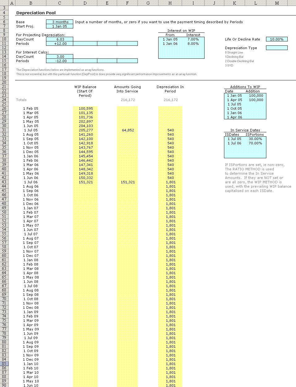 | Operate a Depreciation Pool of Work In Progress, accruing interest on the WIP | |